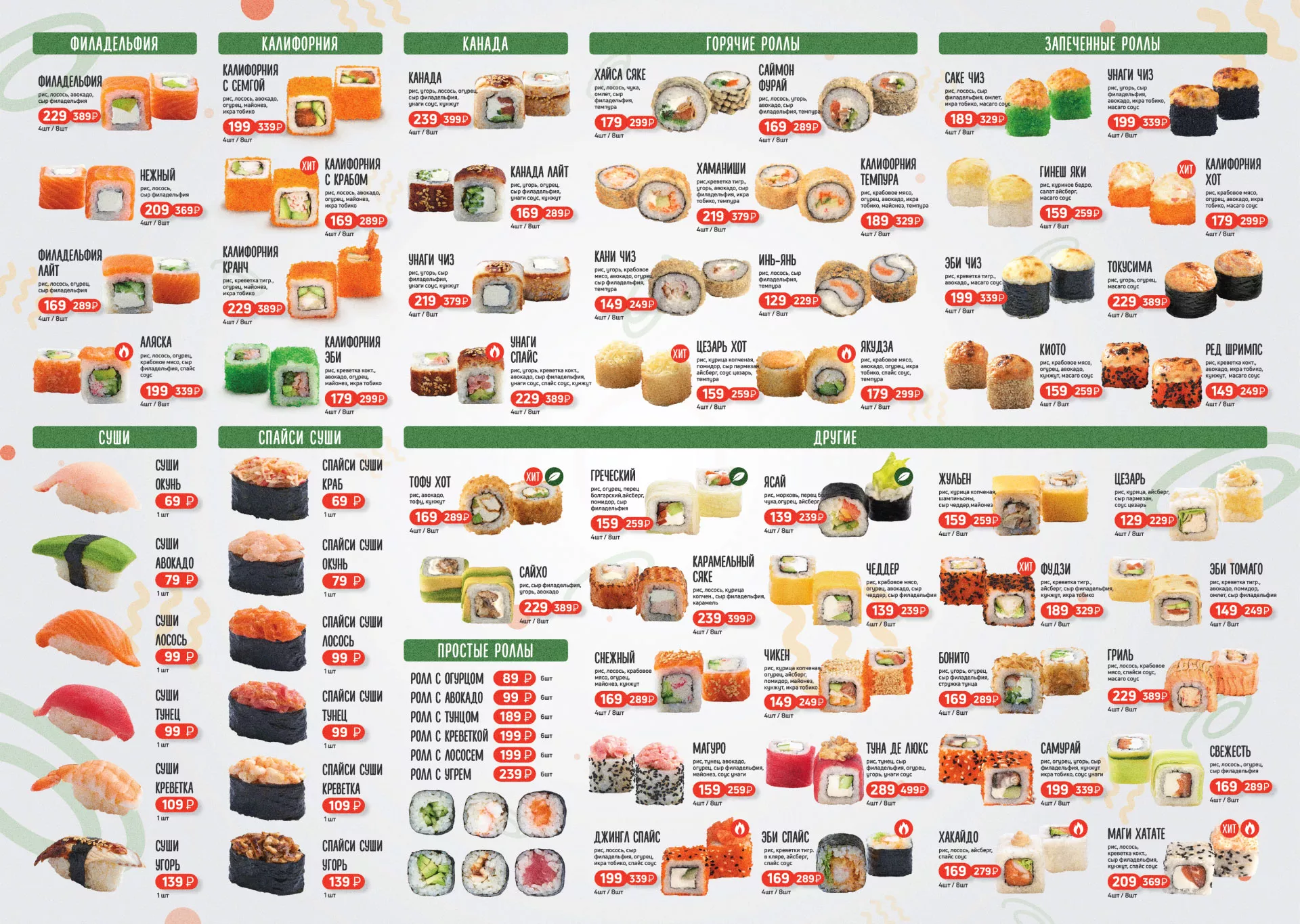 Оформление меню суши-бара «Roll Wok Club» в Новокуйбышевске