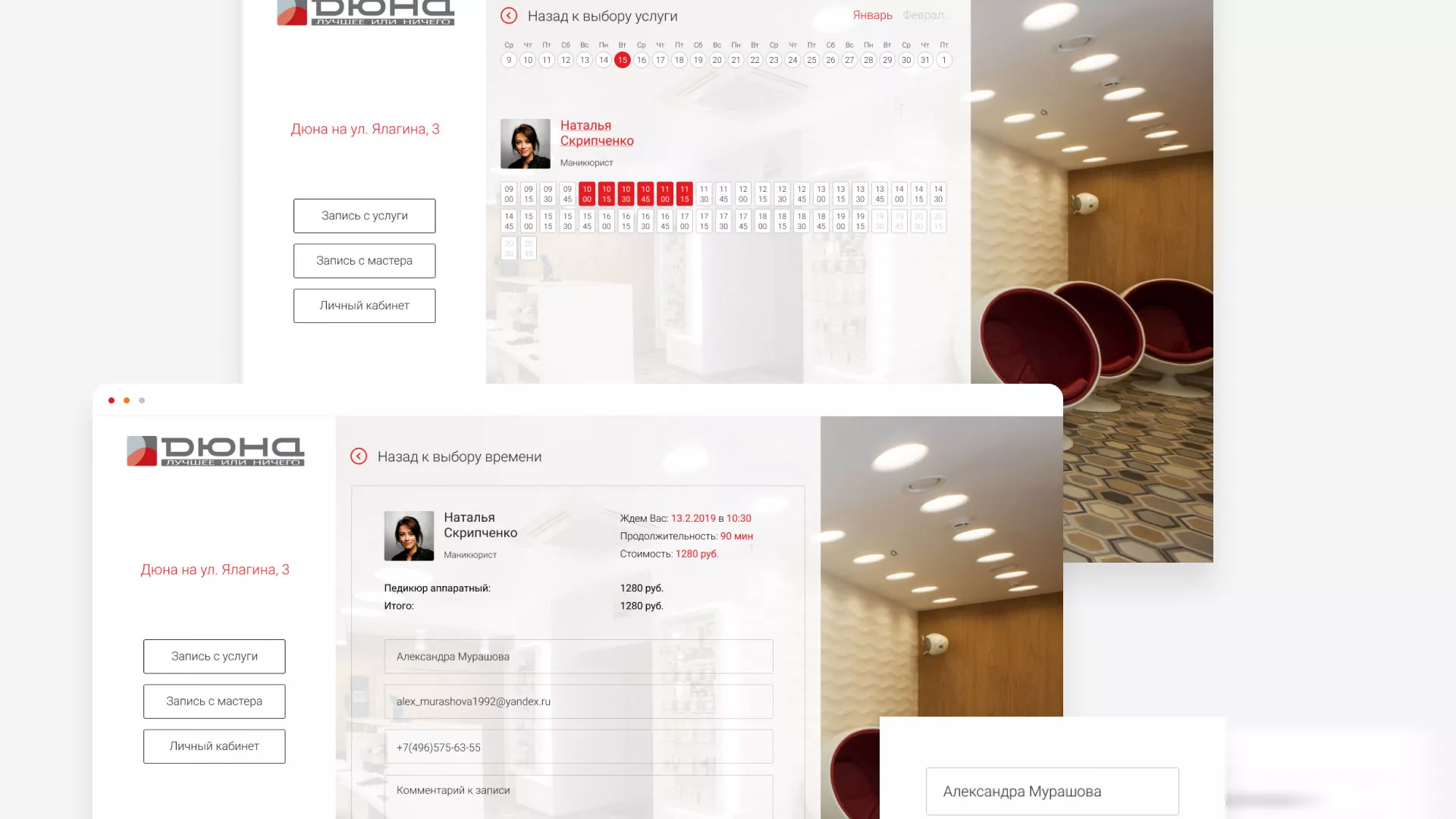 Такой инструмент, как онлайн-запись позволит клиентам записываться в салоны красоты в Новокуйбышевске самостоятельно, в любое время суток, будь то раннее утро или поздний вечер, так как интерфейс сервиса интуитивно понятен и удобен каждому клиенту. А для салона — это возможность принимать заявки в режиме 24/7.